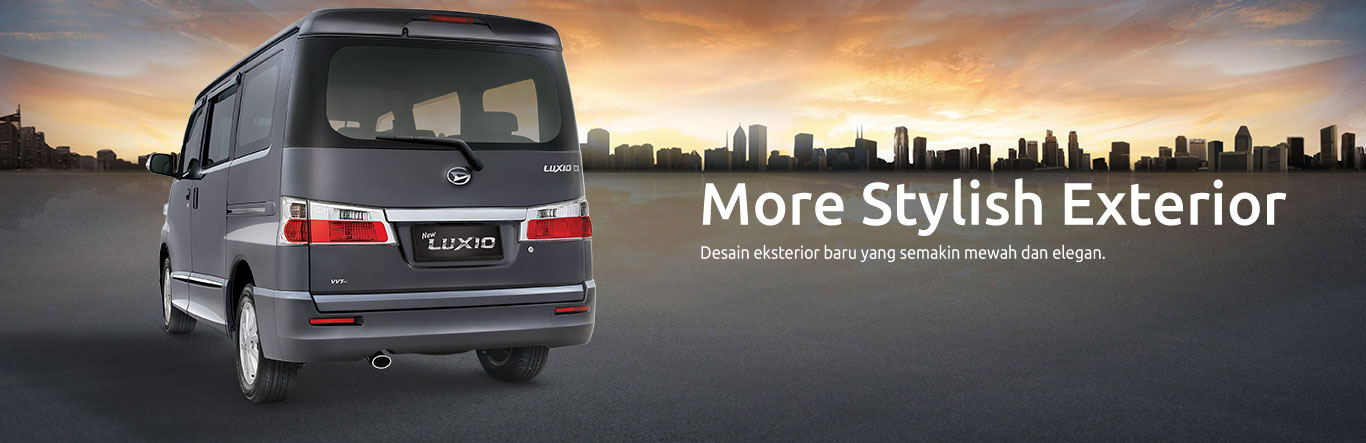 Tampil dengan desain exsterior yang lebih modern, mewah dan stylishterlihat dari tampilan Facia depan yang memiliki grill radiator berukuran lebar dengan aksen crome yang menyatu dengan deadlamp membuat Daihatsu Luxio tampil lebih mewah. Untuk lampu utamanya sendiri menggunakan lampu Multi Reflektor head lamp dengan jenil HD yang akan memberikan pencahayaan lebih maksimal meskipun dalam kondisi hujan atau kabut penggunaan lampu jenis Multi Reaktor Headlamp belum lah banyak yang menggunakan lampu jenis ini, jika melihat bumper depan maka akan terlihat besar dengan tambahan fog lamp.