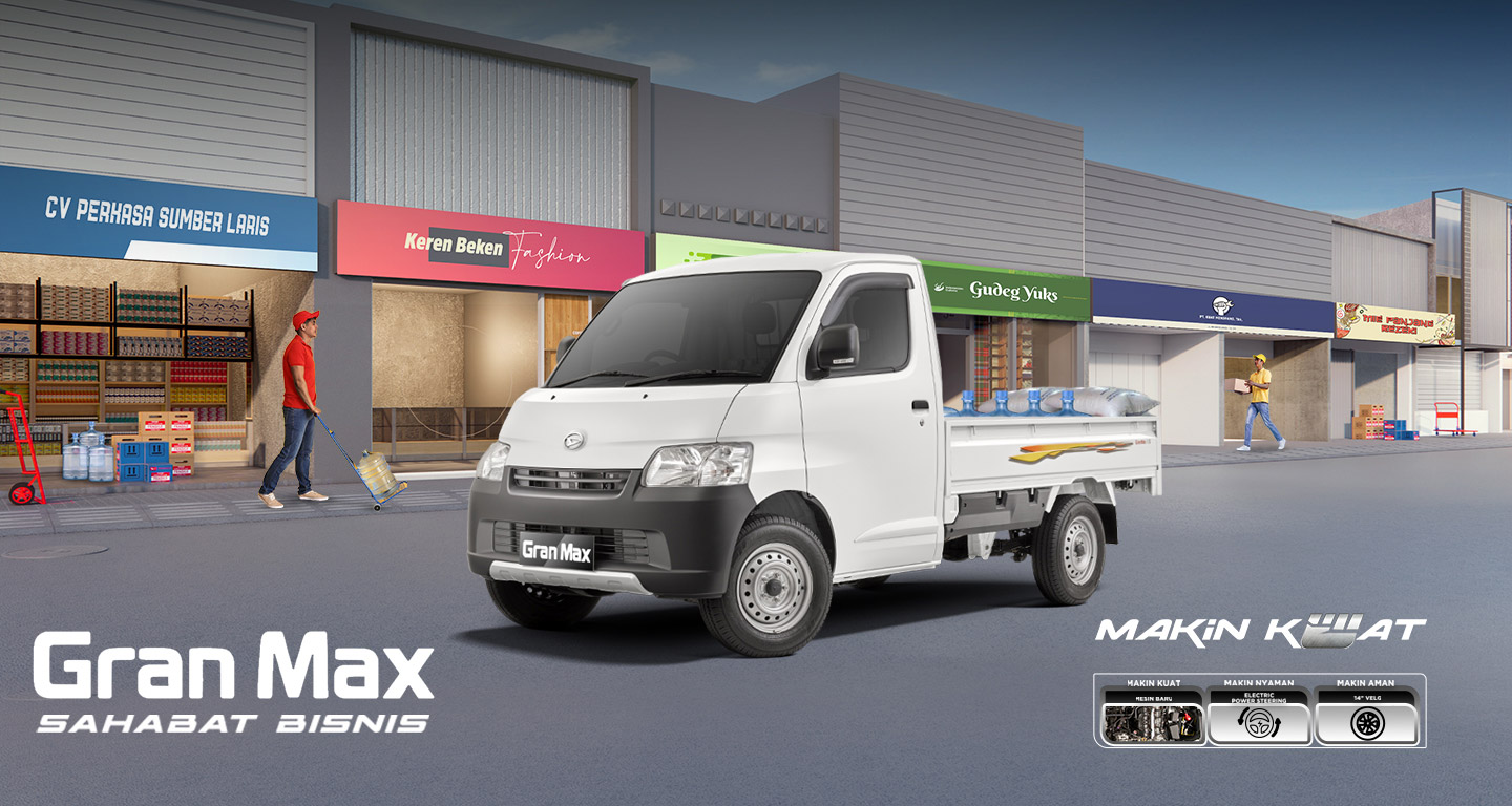GRAN MAX PICK UP hadir dengan dashboard yang lebih modern dan terlihat semakin elegan. Didesain untuk menjadi Sahabat Bisnis, GRAN MAX PICK UP semakin siap menemani Sahabat dengan ruang lebih luas untuk 3 orang, hingga desain terbaru door arm rest dan cup holder untuk memudahkan Sahabat dalam perjalanan bisnis.